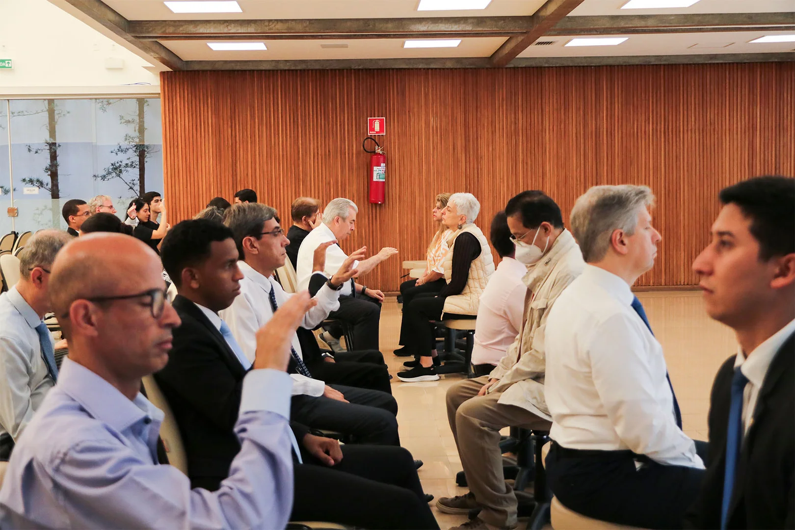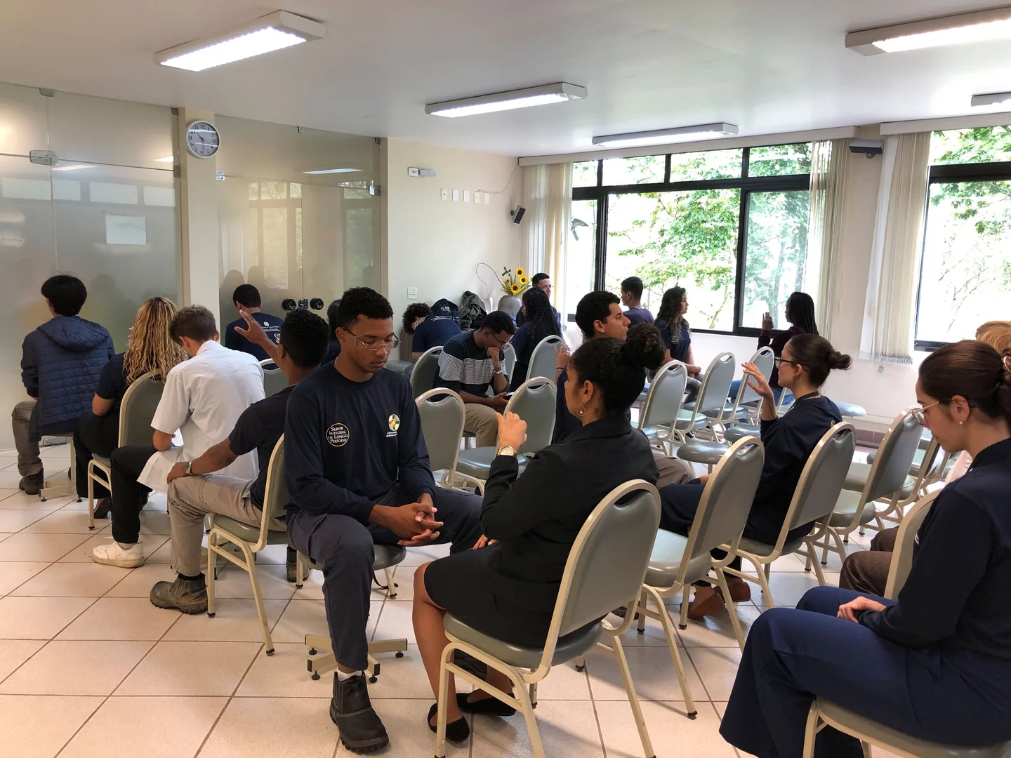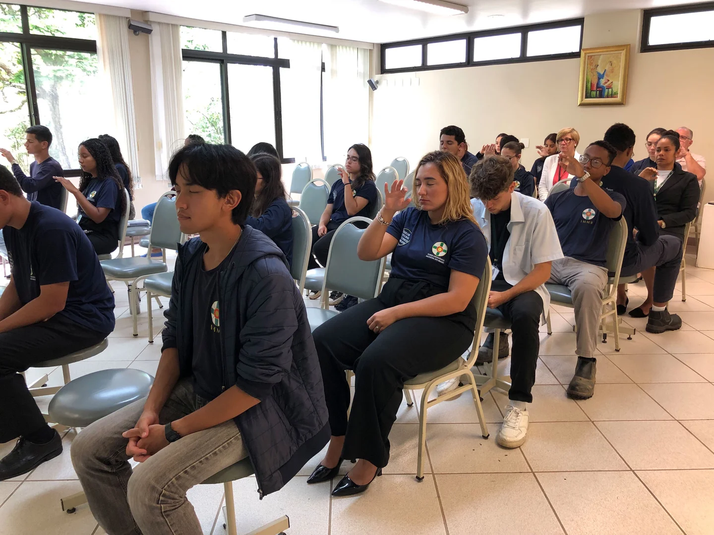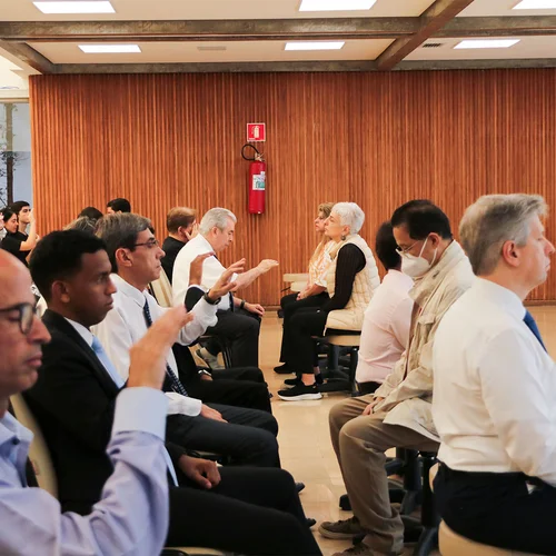 Os colaboradores das instituições coligadas - Igreja Messiânica Mundial do Brasil (IMMB), juntamente com o Solo Sagrado de Guarapiranga, Fundação Mokiti Okada (FMO) e Korin Empreendimentos - também se utilizam da pausa do almoço, na tarde desta quarta-feira, 11 de dezembro de 2024, para participarem do Grande Encontro de Johrei - Dai Johrei Kai.