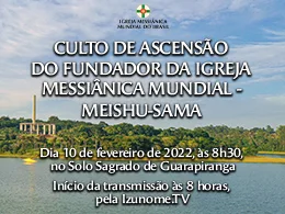 O Culto de Ascensão do Fundador da Igreja Messiânica Mundial - Meishu-Sama será realizado no dia 10 de fevereiro, às 8h30, no Solo Sagrado de Guarapiranga.