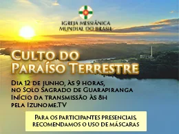 O Culto do Paraíso Terrestre será celebrado no dia 12 de junho.