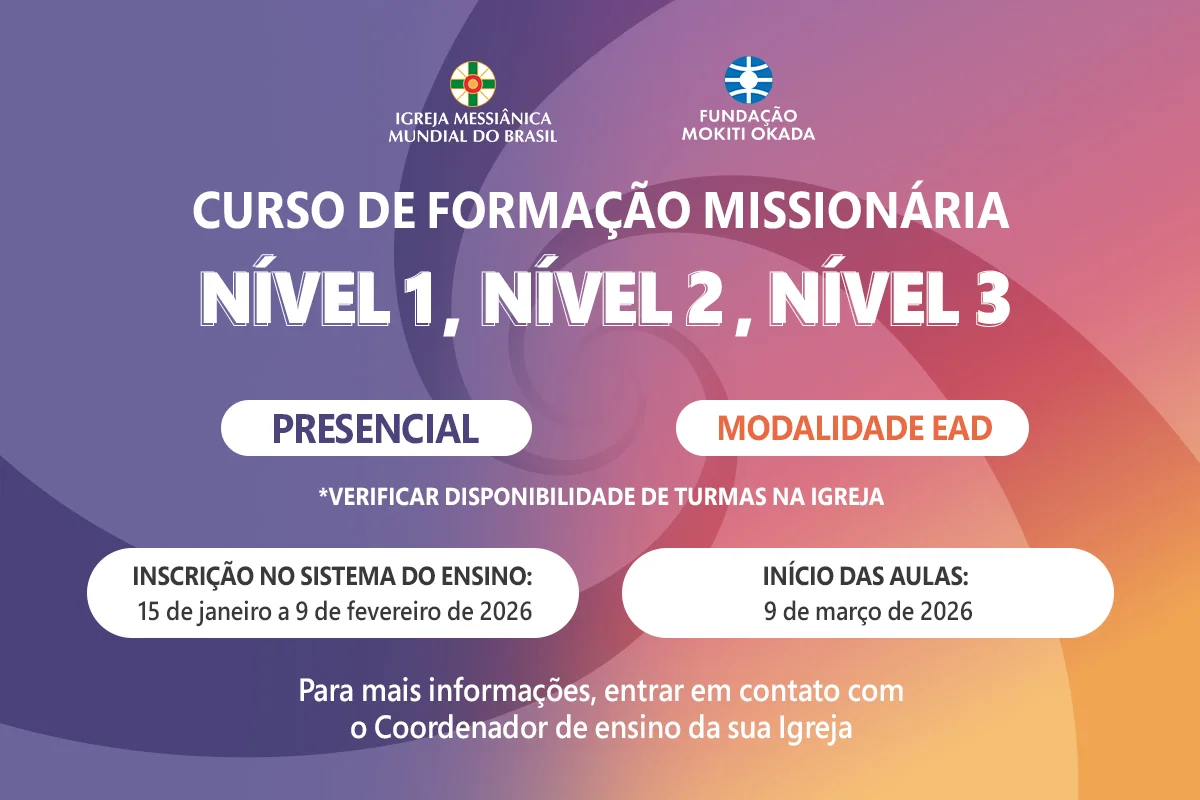 Estão abertas as inscrições para novas turmas do Curso de Formação Missionária, uma oportunidade única de aprofundar conhecimentos, fortalecer a prática missionária e vivenciar um processo de formação completo, alinhado aos princípios e valores da fé messiânica.
