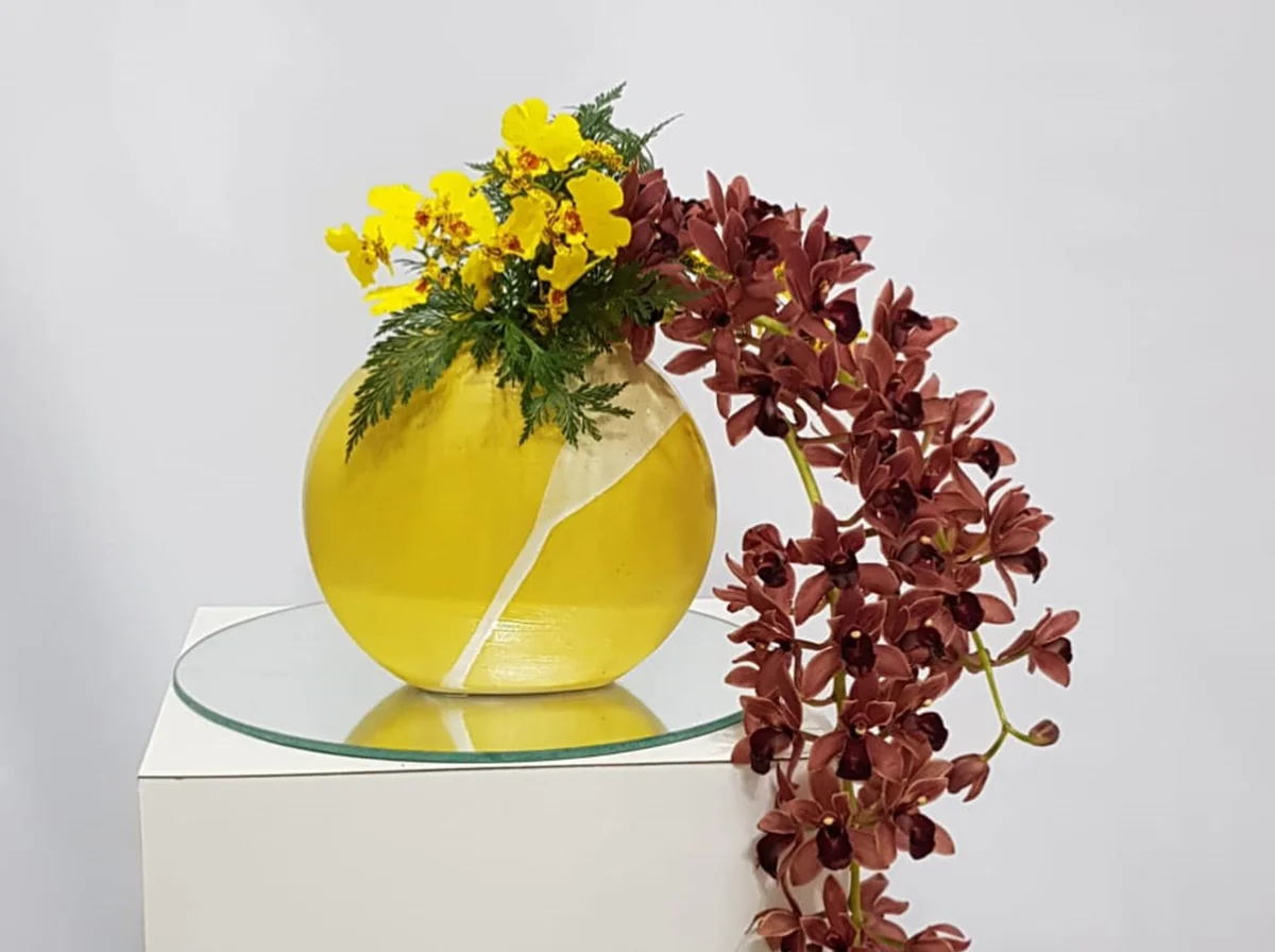 Duas artes irmãs se uniram nessa exposição: A arte da cerâmica e a arte da Ikebana.