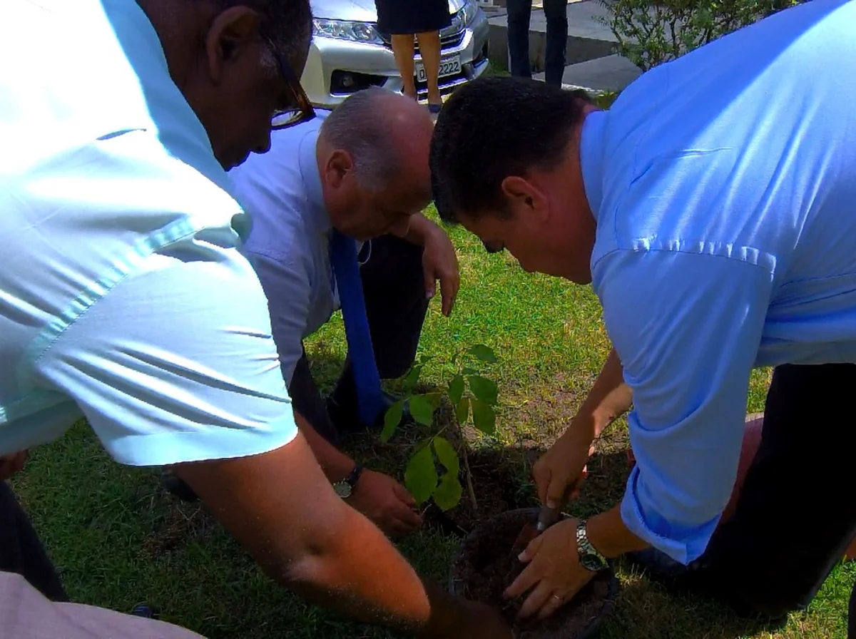 A muda foi plantada no jardim de entrada da unidade religiosa, na presença de missionários, membros e frequentadores.