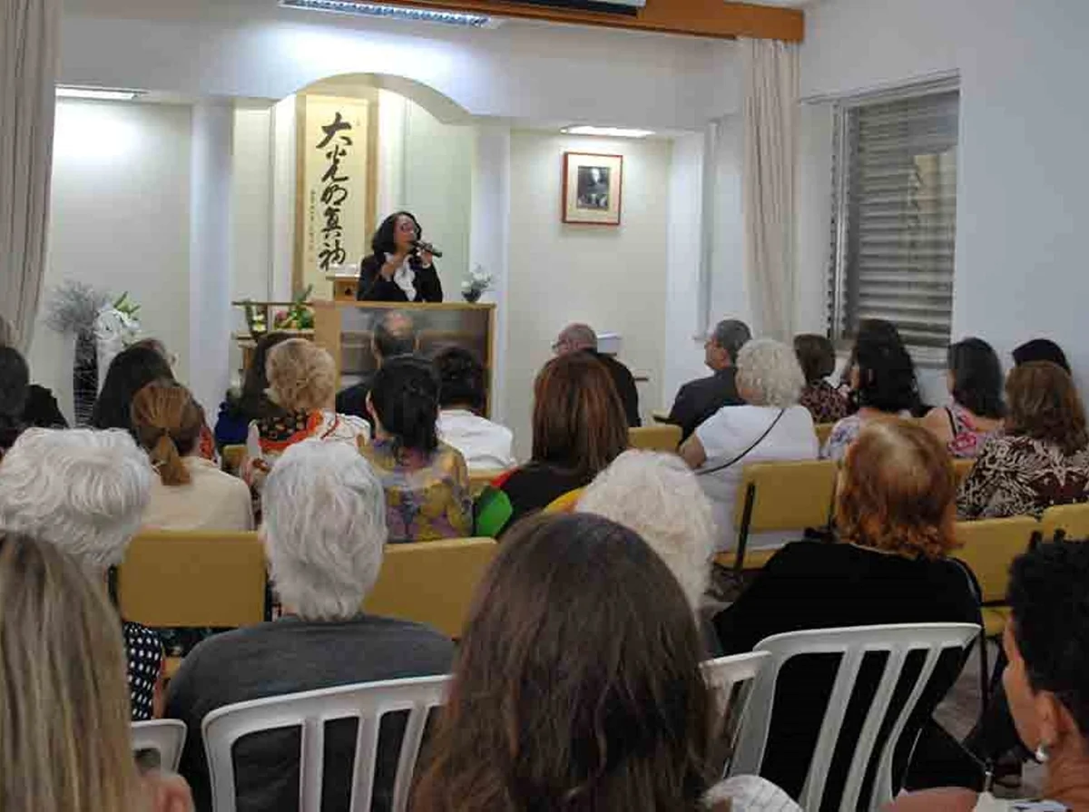 A responsável pelo Johrei Center Niterói, ministra Claudia Maria Costa Alves de Oliveira, orientou os presentes a partir da palestra do presidente da IMMB, reverendo Marco Antônio Baptista Resende, e tendo como referência a Experiência de Fé de Maria Ester Rascalia.